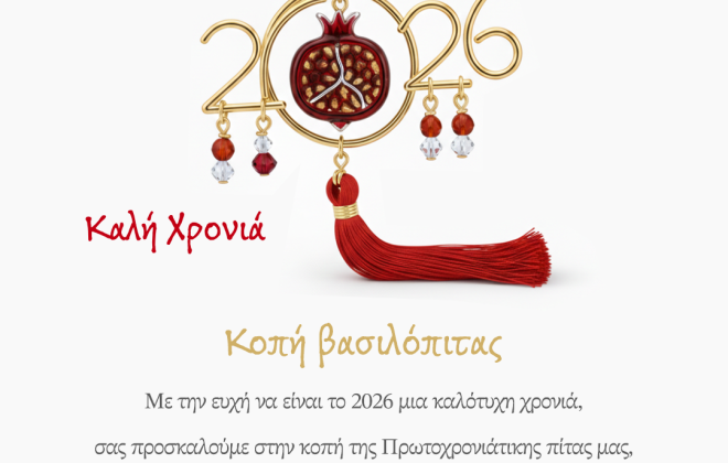 Πρόσκληση για την κοπή της πρωτοχρονιάτικης πίτας για το 2026