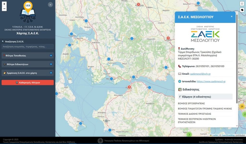 Διαδραστικός χάρτης Σ.Α.Ε.Κ. αρμοδιότητας της Γενικής Γραμματείας Ε.Ε.Κ. & Δ.Β.Μ. του Υ.ΠΑΙ.Θ.Α.