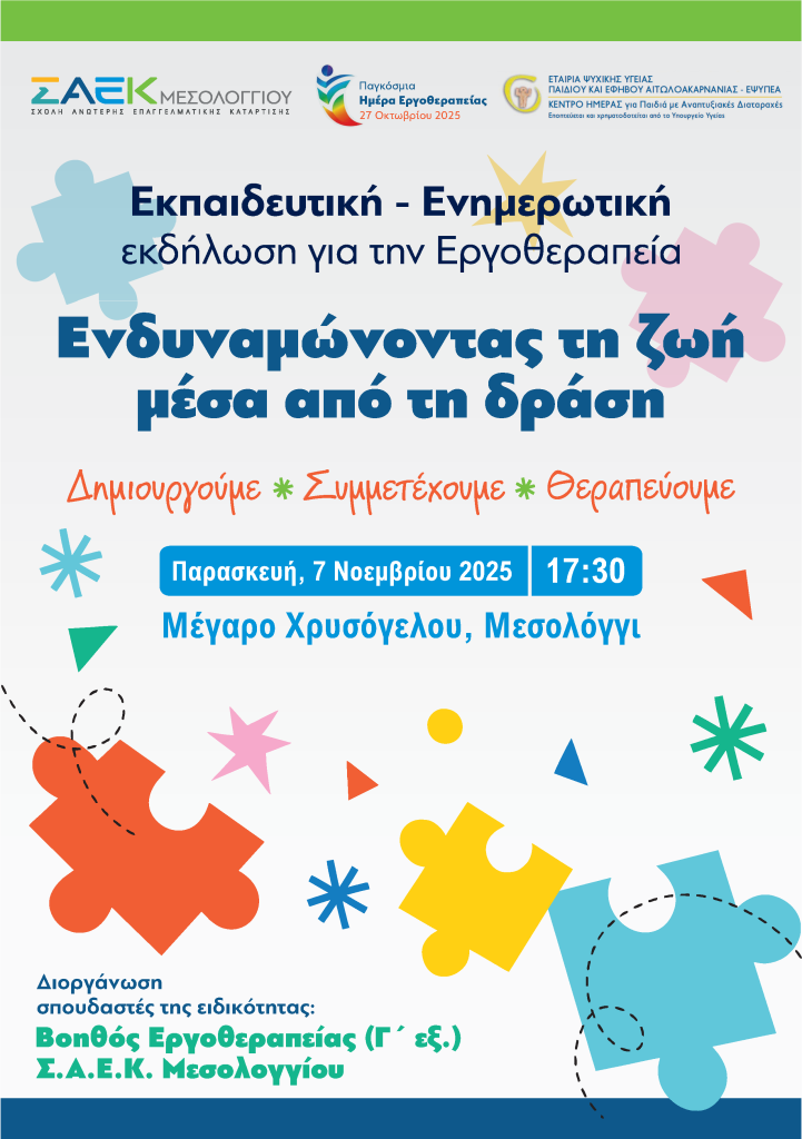 Εκπαιδευτική – Ενημερωτική εκδήλωση με αφορμή την Παγκόσμια Ημέρα Εργοθεραπείας