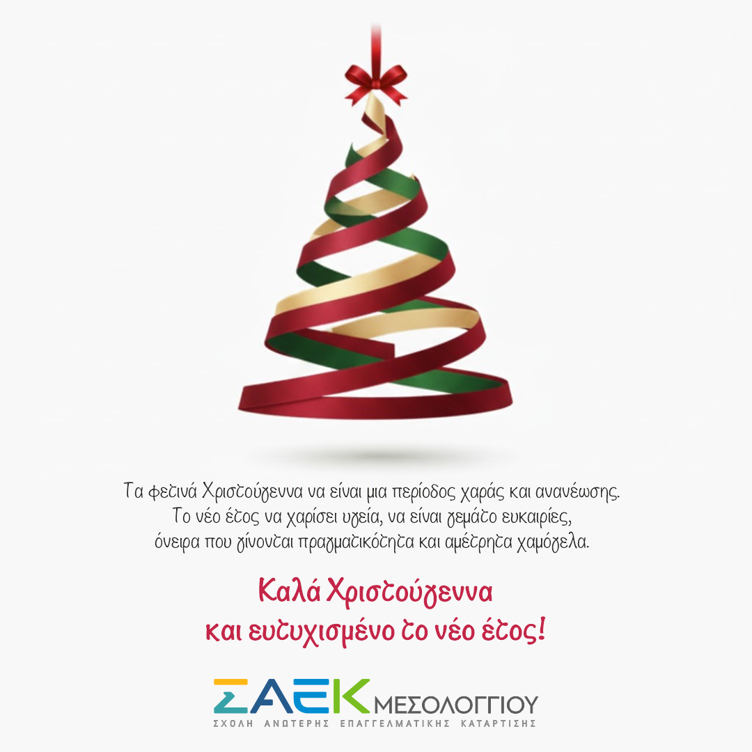 Η Διεύθυνση και το προσωπικό, της Σ.Α.Ε.Κ. Μεσολογγίου εύχονται ολόψυχα τα φετινά Χριστούγεννα να είναι μια περίοδος χαράς και ανανέωσης.
